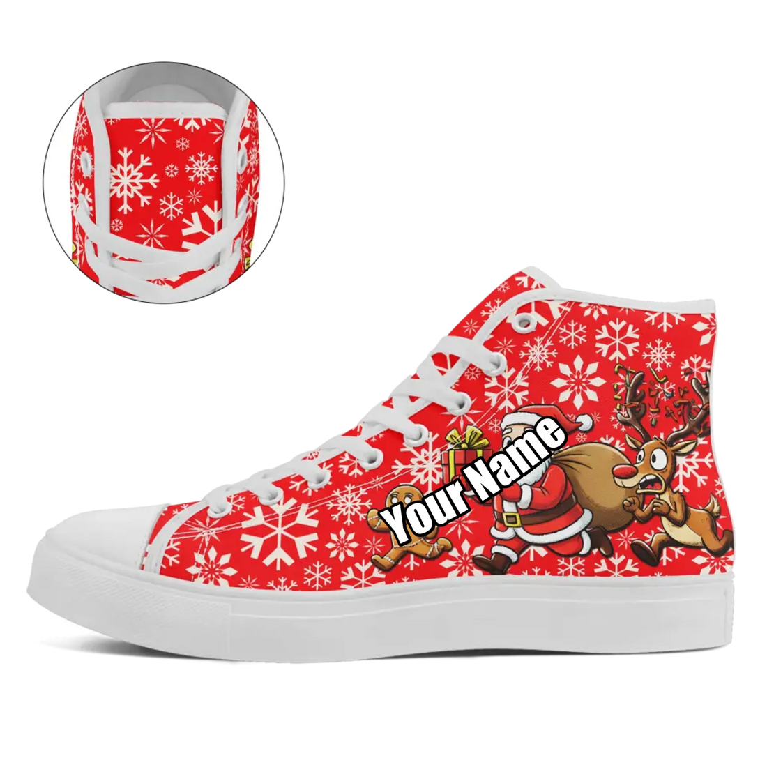 Santa's Christmas Chase" Cartoon High-Top Sneakers - Festive Holiday Style FN024-25018059