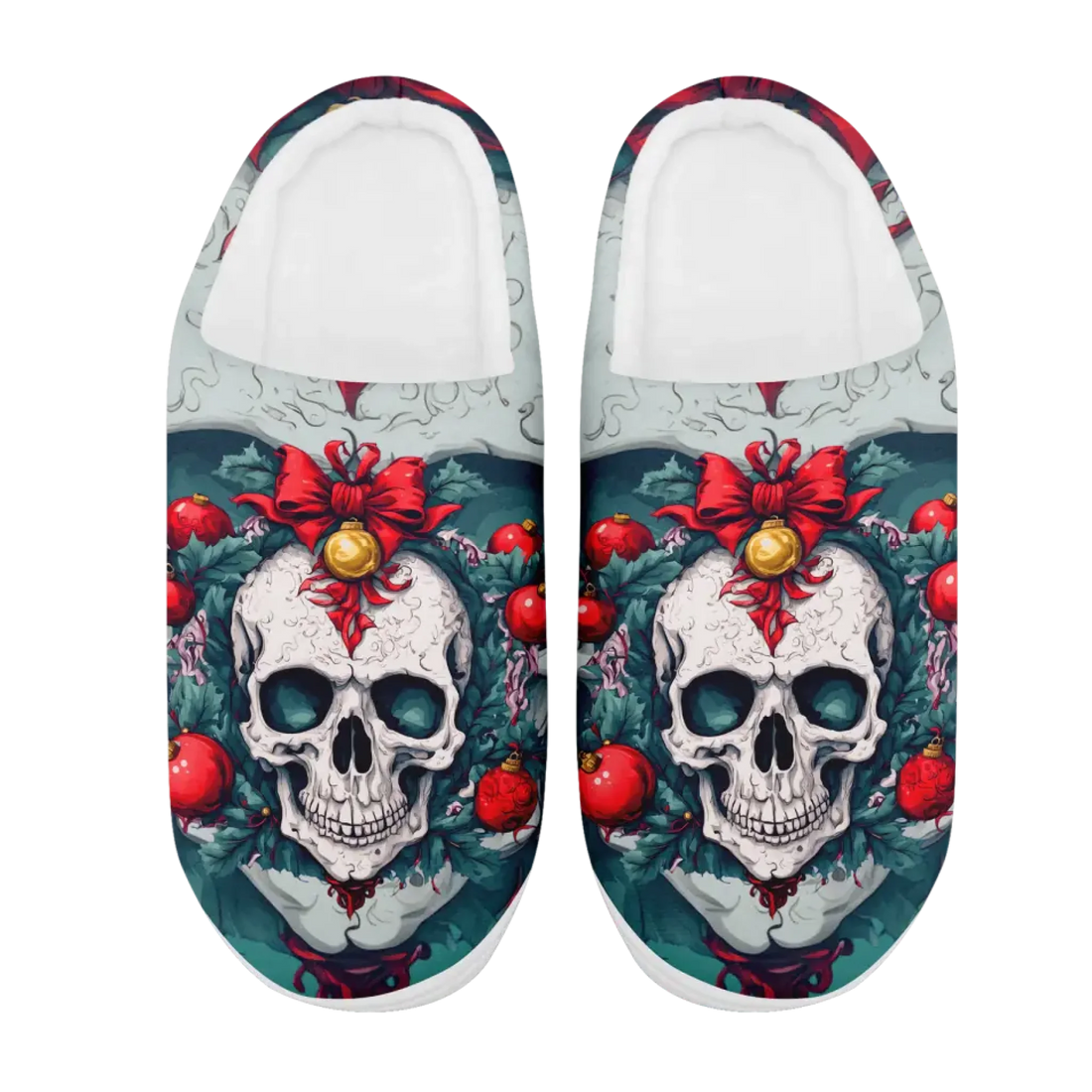 Gothic Christmas Skull Wreath House Slippers - Alternative Holiday Style FN060-25023207