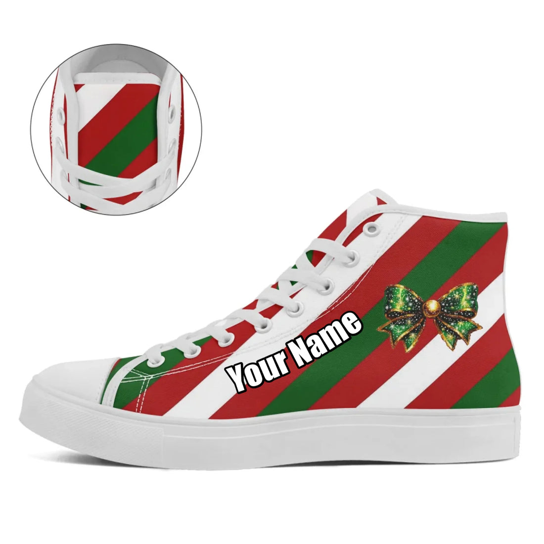 Christmas "Gift Wrap" Stripe & Bow High-Top Sneakers - Festive Holiday Style FN024-25014007