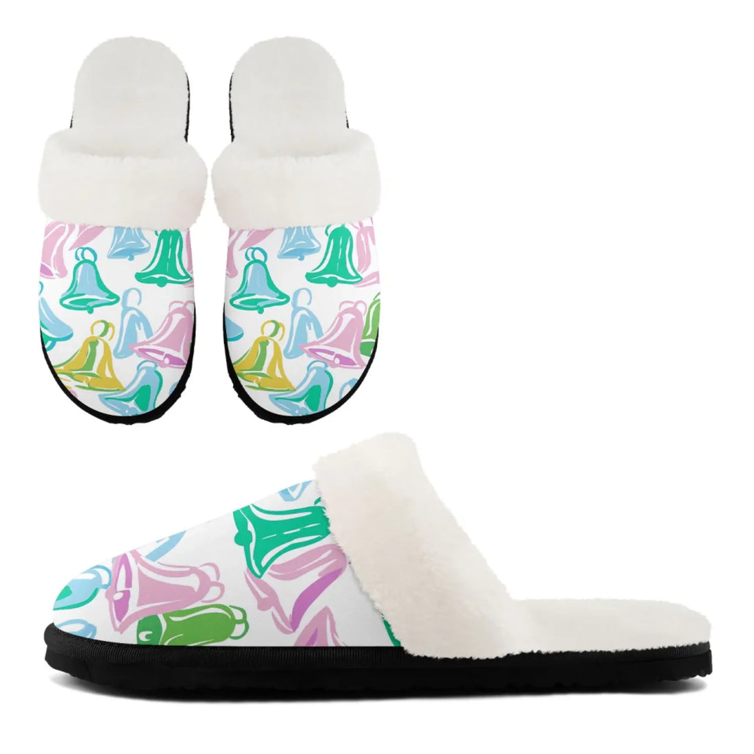 Pastel Jingle Bell Print Slippers - Whimsical Christmas Style FN089-25028175