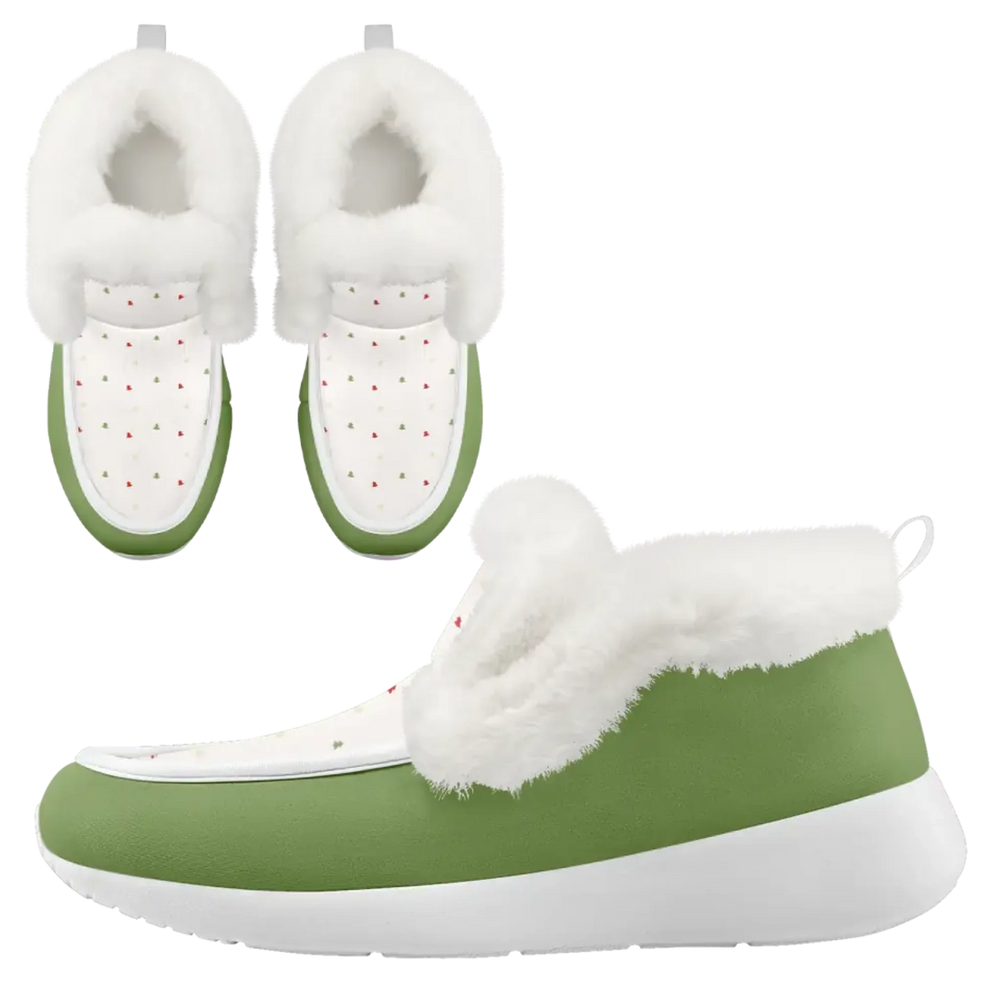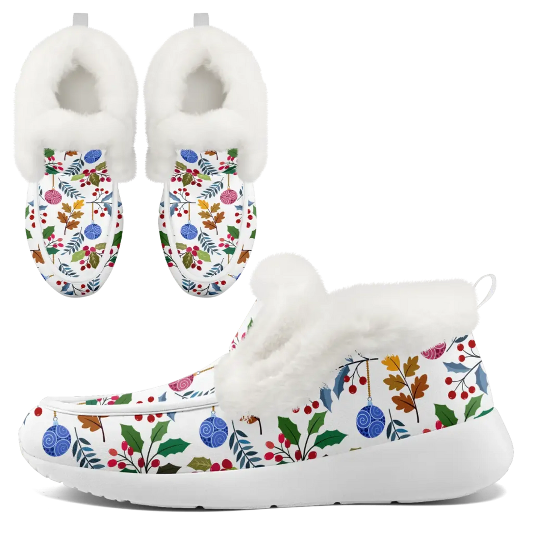 hristmas Holly Berry Print Plush Sneaker Slippers - Chic Holiday Style FN064-25027177
