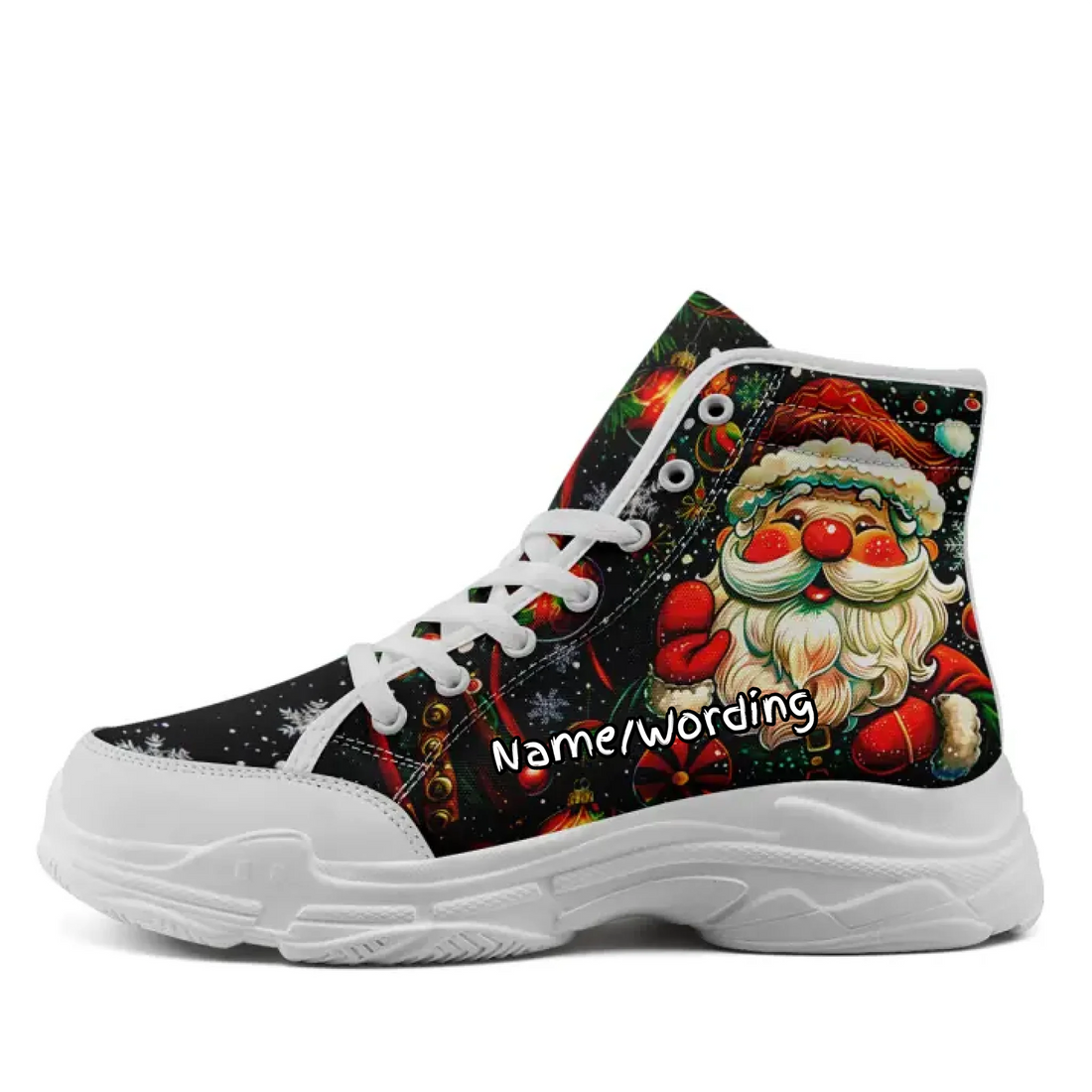 Artistic Santa Claus Christmas Chunky Sneakers, Festive Ornaments High-Top Holiday Shoes FN033-24027007