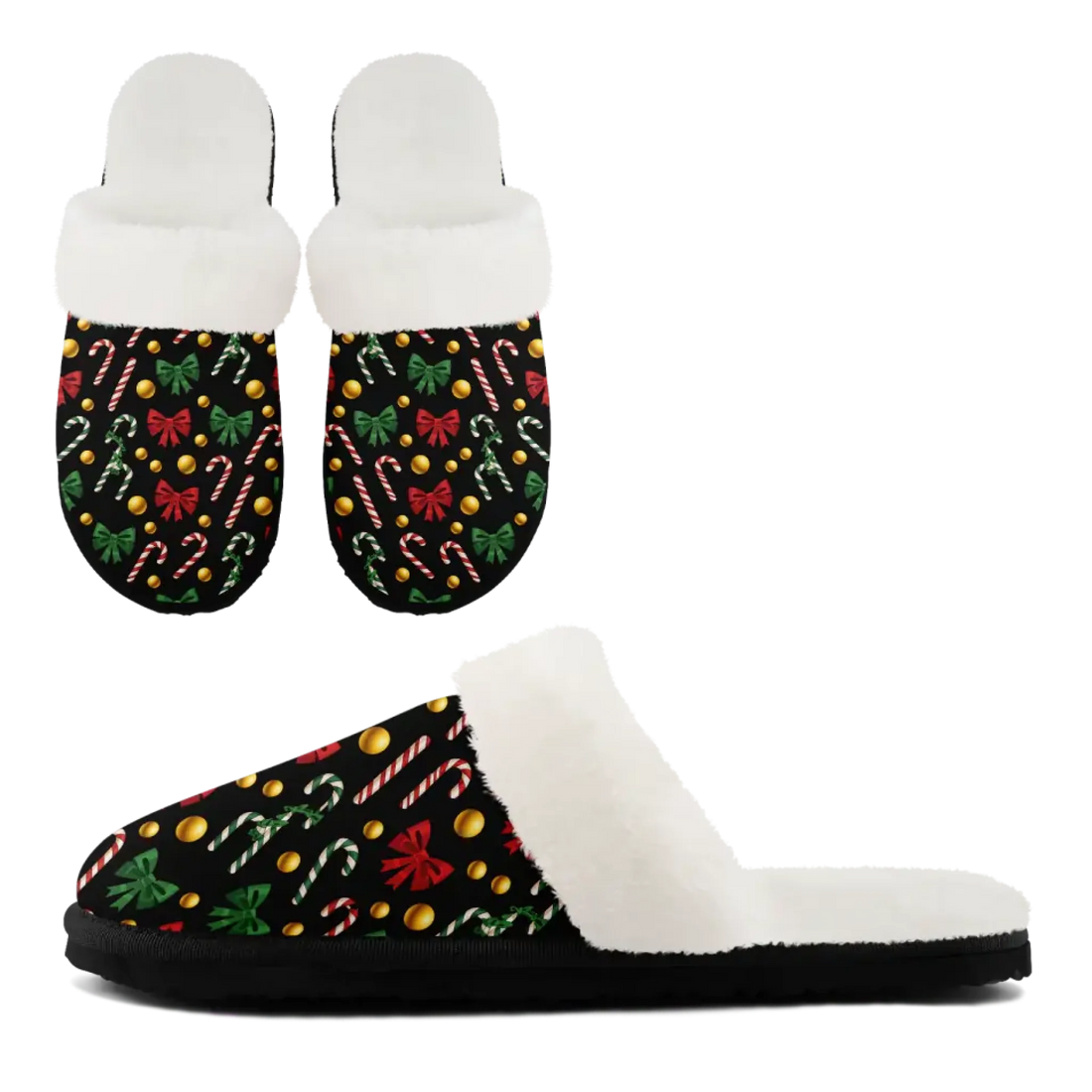 Classic Christmas Icons Cozy Slippers, Black Holiday Plush Lined Footwear FN089-25018054