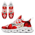 Move beyond goofy Christmas patterns. These trainers feature an elegant, abstract red floral design (inspired by Poinsettia blooms) that pops against a crisp white background.