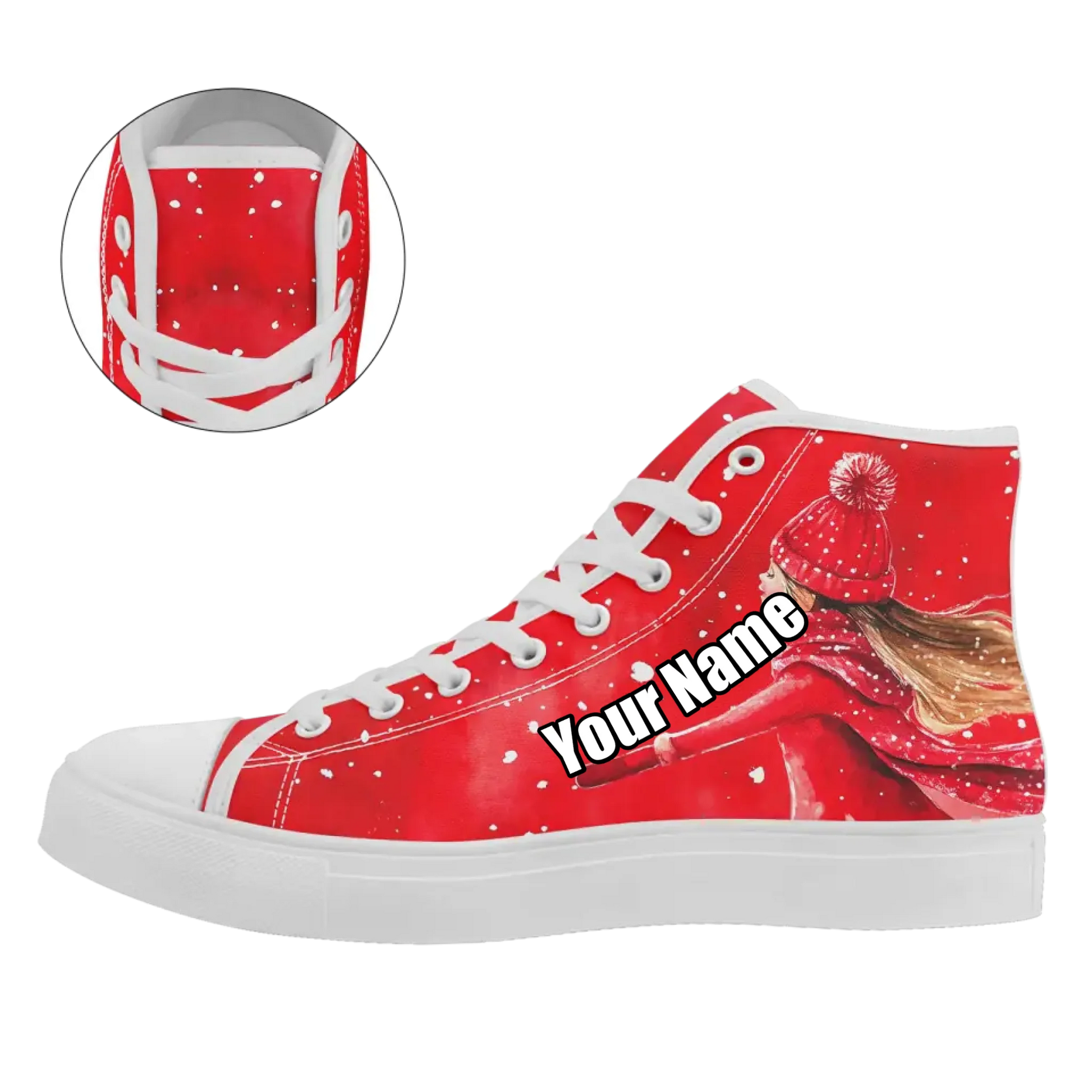 “Snowy Christmas Girl" Illustrated High-Top Sneakers - Festive Holiday Style FN024-25023206
