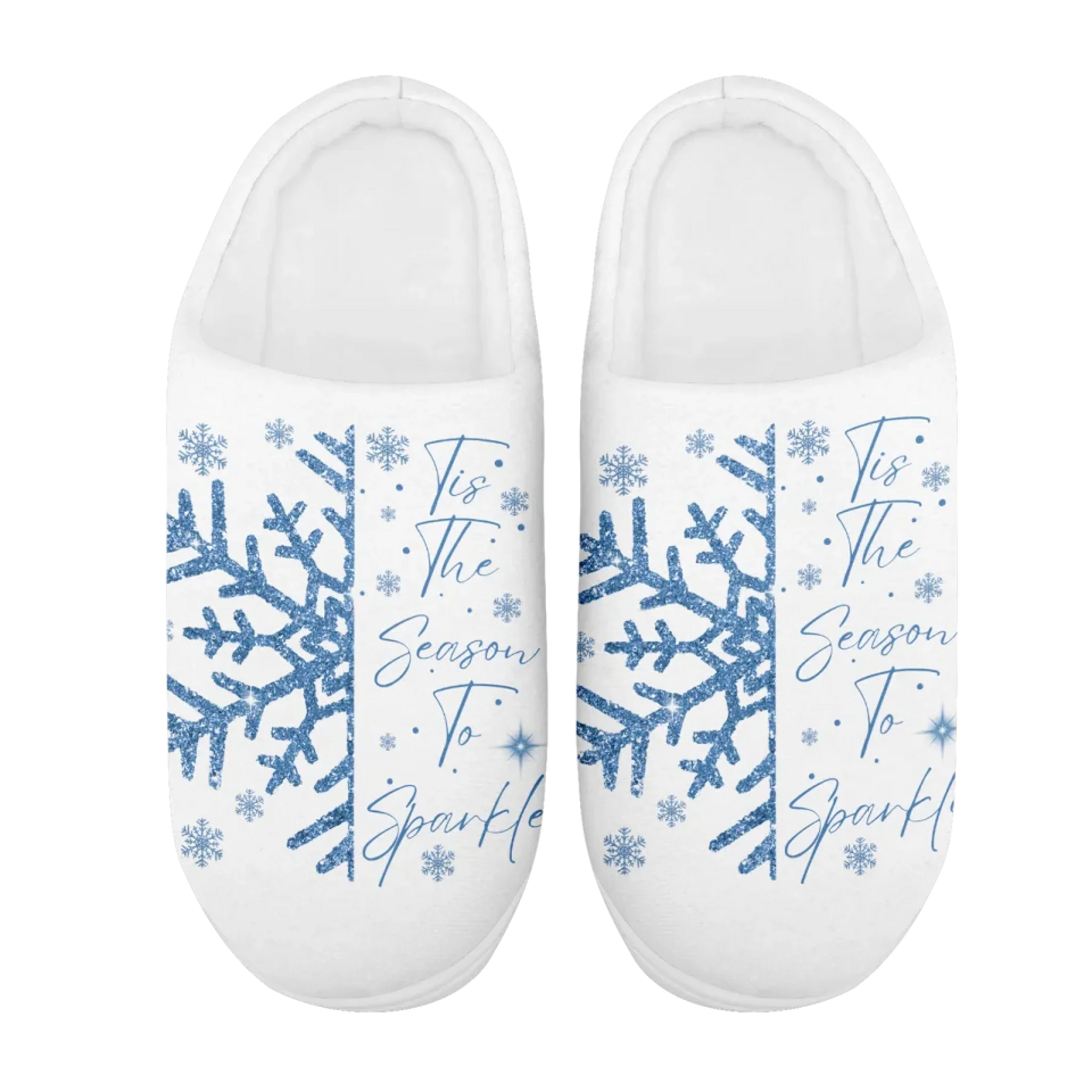 "Tis The Season To Sparkle" Christmas Snowflake Slippers - Cozy Holiday Style FN060-25025166
