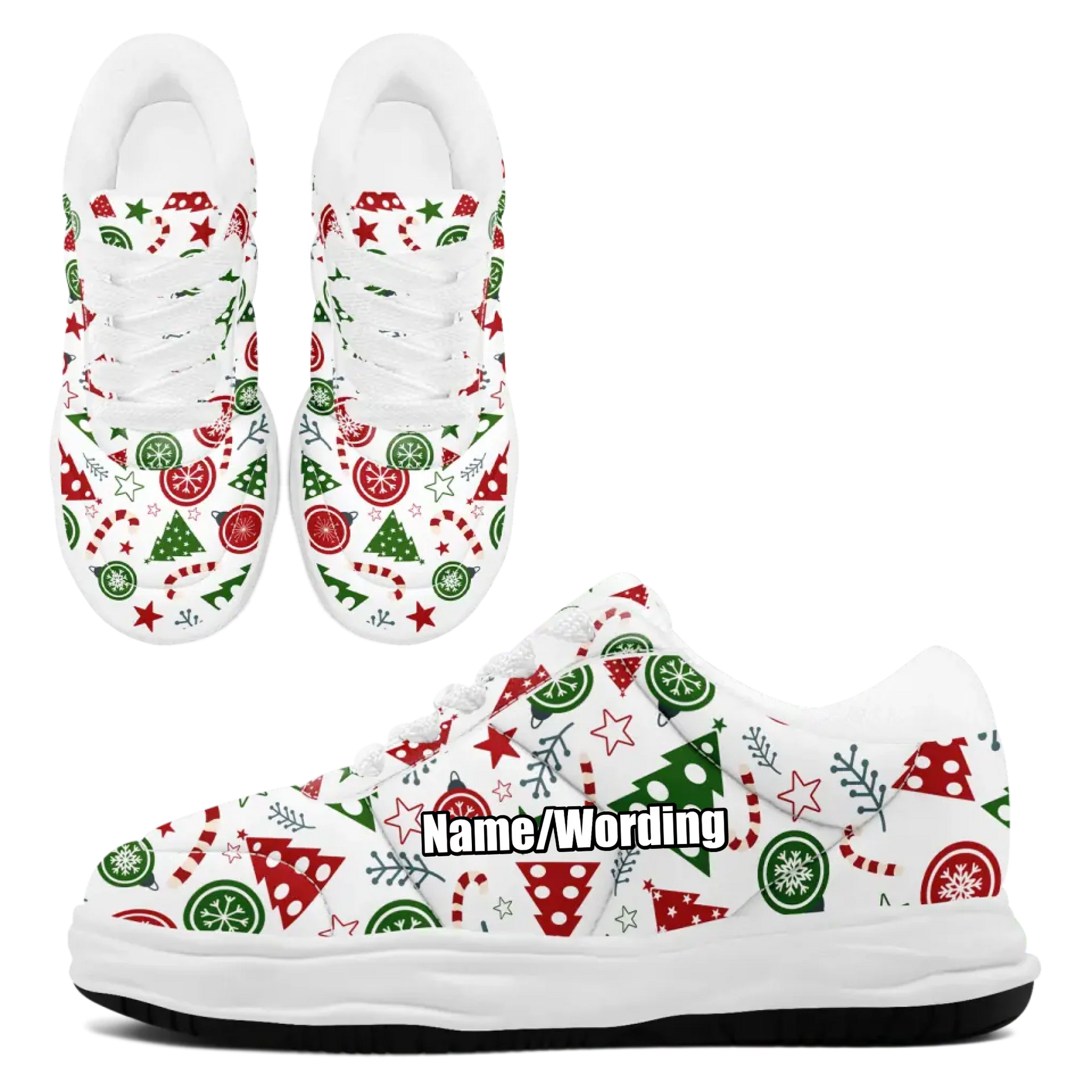 Ditch the boring shoes! These festive sneakers are your new secret weapon for winning the "Ugly Christmas" party. They're covered in all the classic holiday charmsâtrees, ornaments, candy canesâto get you in the spirit instantly.